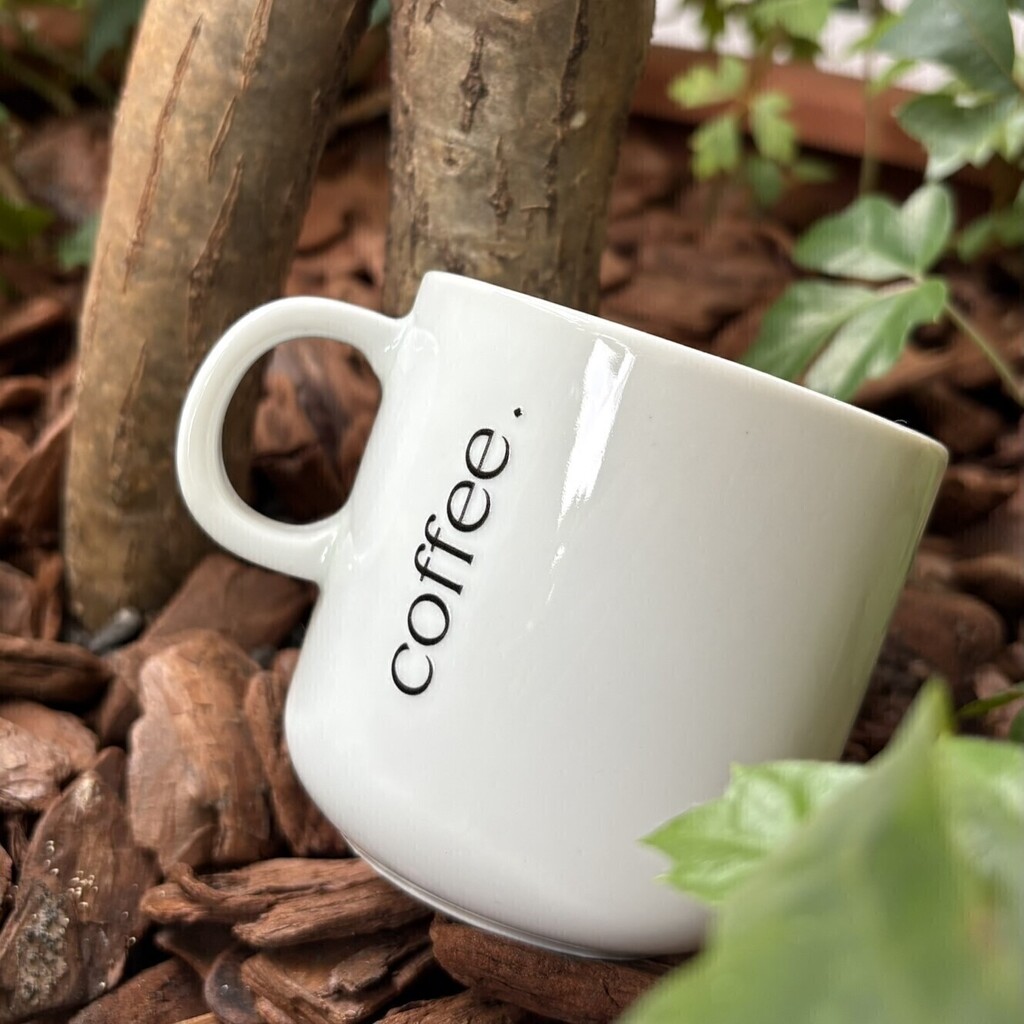 A Canequinha Coffee com a palavra "Coffee." a arte que está em ambos os lados da caneca podendo ser utilizar qualquer uma das mãos. Temos apenas uma opção de tamanho e cor disponível.